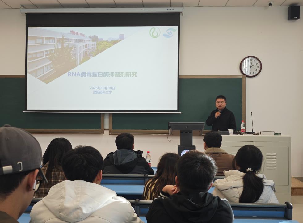 10月30日,金年会jinnianhuicom在南校区播馨楼204教室举办“沈药无涯讲坛”第590讲暨“智药讲坛”第81讲学术报告会。中国科学院上海药物研究所/烟台新药创制山东省实验室蒋翔锐研究员应邀进行学术交流,分享最新研究成果。院内外120余名师生参加学术报告会,报告会由副院长关奇主持。
