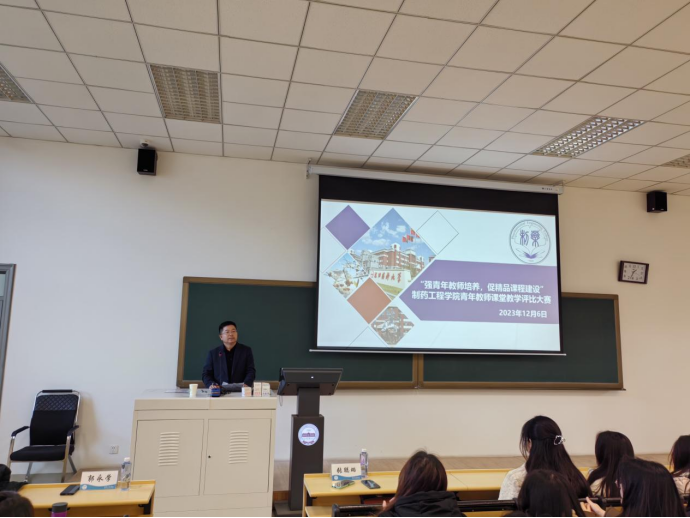 副院长郭永学为课堂教学评比活动致辞。郭院长提出,教学评比是展现青年教师教学技能的机会,搭建了教师相互学习、促进专业发展的平台,希望参赛教师能够以平和的心态赛出水平,通过教学评比进一步夯实教学基本功,提高教学基本能力,更好地担当起学生成长成才引路人的责任,培养更多的药学创新人才。