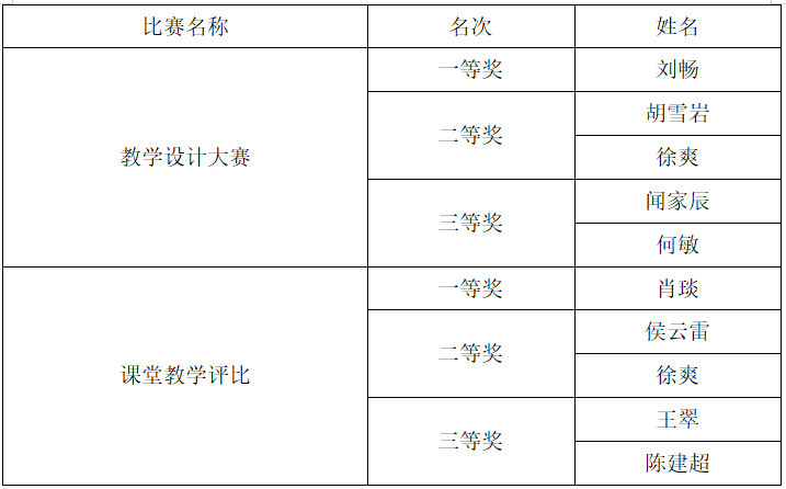 教学设计大赛和课堂教学评比活动获奖情况。