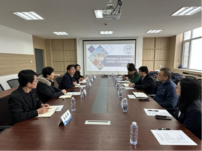 12月6日,浙江工业大学药学院院长王亚军、副院长谢媛媛、副院长李行诺、学院党委副书记乔婧芳、学科办副主任楚楚、学院办公室主任高丽萍一行6人来到金年会官网进行访问,就推动双方开展绿色制药协同创新进行调研。学院院长刘洋、院党委书记李哲、药学院副院长赵云丽、有机教研室教师任旭红、药物化学教研室教师吴成军参加了调研座谈。