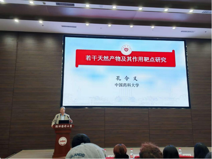 孔令义教授作了题为“若干天然产物及其作用靶点研究”的学术报告,介绍了近年来课题组围绕若干重要类型的天然产物开展的分离鉴定、结构修饰和靶点发现等开展的一系列研究工作。其研究工作充分发挥天然药物特色与优势,对揭示中药的药效物质基础和创制具有自主知识产权的创新药物具有重要意义。