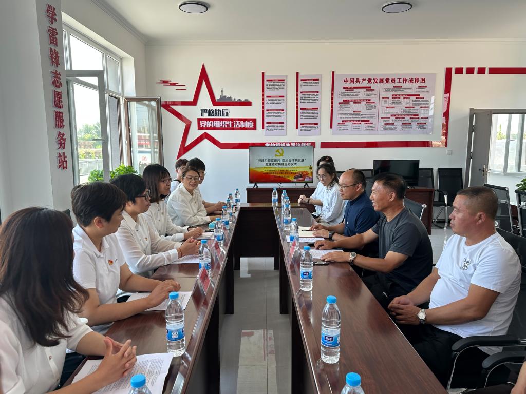会上,首先由金年会jinnianhuicom党委书记李哲代表学院详细介绍了金年会官网悠久的办学历史、学院的发展历程以及学院党委的基本情况,并向小塔子村党支部分享了开展主题教育的工作经验和所取得的成效。她表示,希望双方以“结对共建”活动为载体,进一步深化交流与合作,充分发挥党建引领作用,共同为乡村振兴贡献出一份力量,也不断扩大金年会官网在新民市的影响力和知名度。随后,由金年会jinnianhuicom扶贫干部、小塔子村第一书记刘鹏程介绍了小塔子村近一些年的整体变化情况和冷棚菜、风力发电等产业布局,以及担任村第一书记以来的工作感悟;由金年会jinnianhuicom辅导员、本科生第二党支部书记孙旭介绍了学生党支部建设情况,分享交流了党支部开展主题教育经验做法。