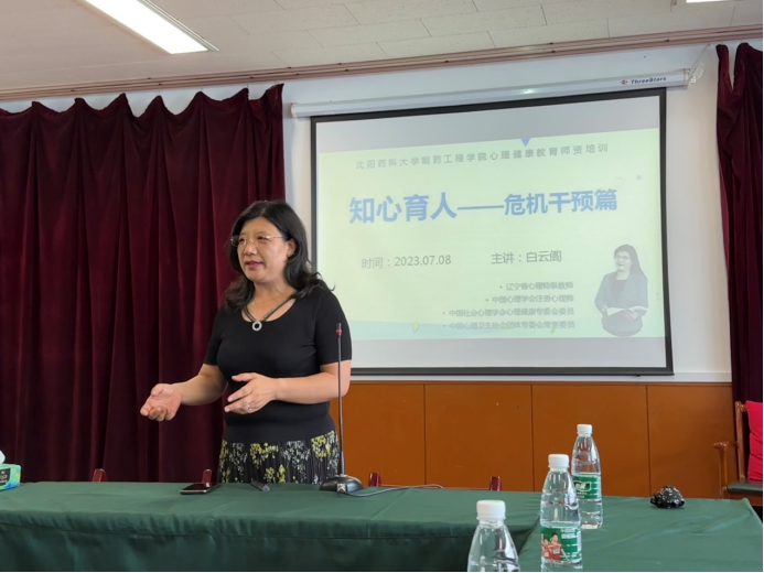 为切实增强学院教师心理健康教育工作的专业性和科学性,进一步提升学院教师的心理育人水平及心理危机应对能力,7月8日上午,金年会jinnianhuicom举办“知心育人”心理健康团体辅导工作坊,特邀辽宁省心理特级教师白云阁博士在校本部图书馆第二学术报告厅作心理危机干预培训,学院党委书记李哲、党委副书记刘阳、各教研室教师代表、班导师代表及全体辅导员参加培训,培训会由院党委书记李哲主持。