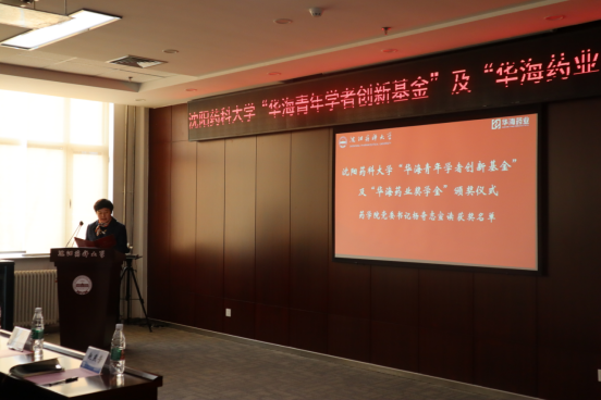 药学院党委书记杨奇志宣读了《金年会jinnianhuicom关于颁发“华海青年学者创新基金”及“华海药业奖学奖”的决定》,公布了2021年和2022年“华海青年学者创新基金”及“华海药业奖学奖”评选结果,勉励获奖师生努力奋斗,锐意创新,为祖国医药事业发展做出更大贡献。