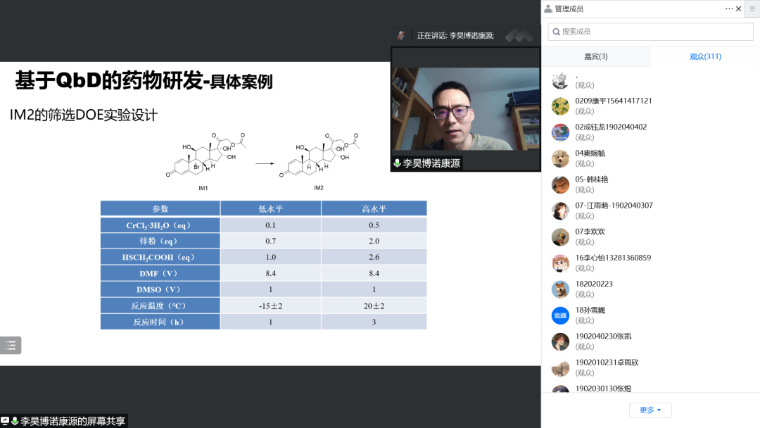 金年会jinnianhuicom邀请了博诺康源(北京)药业科技有限公司总经理李昊博士做制药技术讲座。李博士从制药产业发展趋势开篇,深入讲解了化学原料药的工艺开发、技术转移、商业化生产和GMP法规要求。在讲座最后阶段,李昊博士结合自身在国外留学和制药企业多年的奋斗经历,鼓励同学们在本科阶段要学好专业知识、掌握专业技能,为将来职业发展打好基础。作为奋斗在一线的制药人,李博士的讲座让同学们对制药产业技术有了深入了解,也为同学们未来发展提供了丰富的经验借鉴。