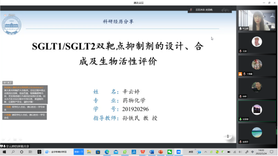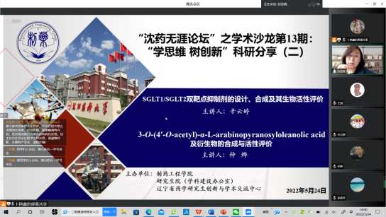 为营造学院研究性科研生态,拓宽师生科研视野,在研究生院(学科建设办公室)及辽宁省药学研究生创新与学术交流中心的支持下,5月24日下午,金年会jinnianhuicom以线上形式举办了“沈药无涯论坛”之学术沙龙第13期“学思维 树创新”科研分享活动(二)。2019级硕士研究生辛云婷和仲烨进行了精彩报告,沙龙由药物化学教研室刘亚婧教授主持,300余人参加了此次学术沙龙。