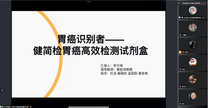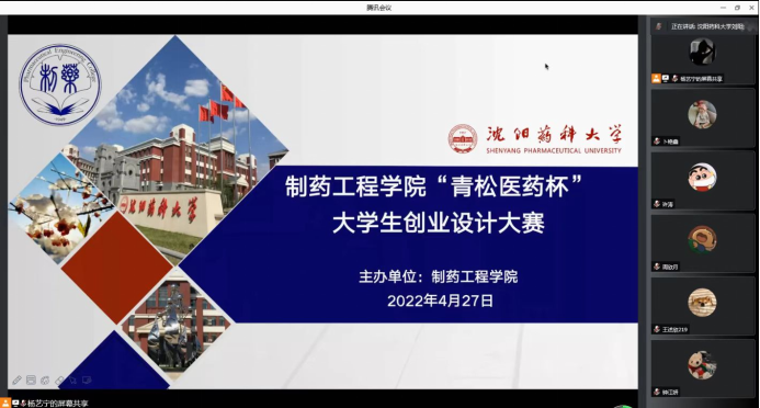 2022年4月27日晚,金年会jinnianhuicom举办了“青松医药杯”大学生创业设计大赛院赛。本次创业设计大赛得到了金年会jinnianhuicom师生们的热烈关注和积极参与,共收到参赛作品36项,参赛项目涵盖医疗器械、养生餐饮、商业服务、医药文化公司等方面,经过初筛共选出13项优秀作品进入现场答辩环节。院赛以云赛场形式进行,项目展示采用“5+5”形式,PPT展示五分钟、答辩环节五分钟。