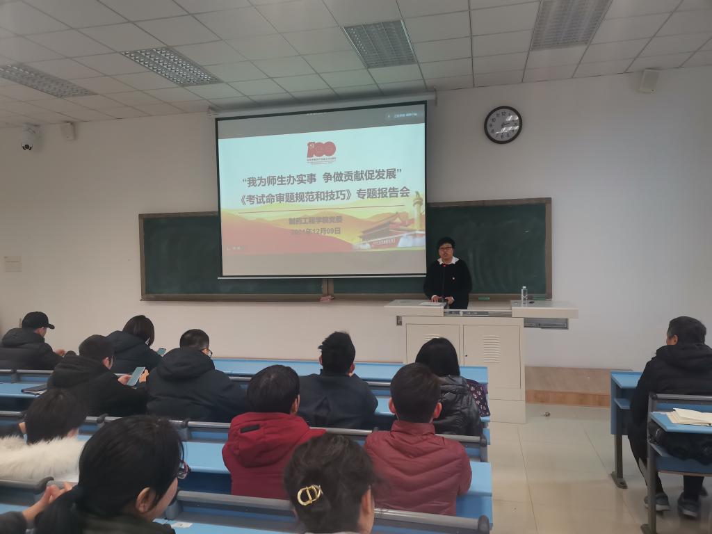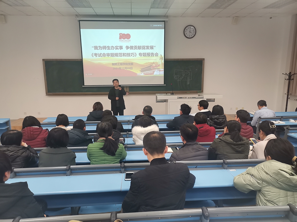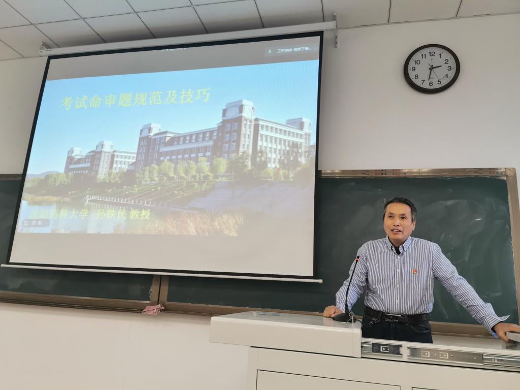 为提高学院教师课程命题规范性和命题质量,金年会jinnianhuicom于12月9日下午在南校区播馨楼104采取线上、线下相结合的方式召开“我为师生办实事、争做贡献促发展”考试命审题规范和技巧专题报告会,邀请辽宁省教学名师、药物化学教研室孙铁民教授做专题报告。院领导班子成员、学院教师参加了会议,校教学督导办公室主任罗向红正高级研究员、兄弟学院部分教师通过腾讯会议线上参会,报告会由院党委书记李哲主持。