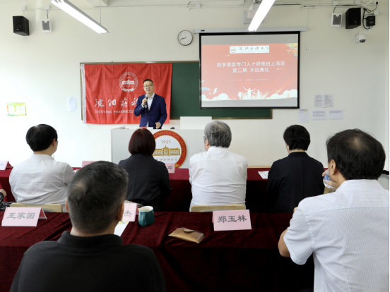 5月15日,金年会jinnianhuicom与上海秉卓信息科技有限公司联合举行药学高级专门人才研修班(上海三期班)开班典礼。金年会官网副校长冯玉竑、研究生院院长翟鑫、金年会jinnianhuicom院长赵临襄,上海市医药学校党委书记石兴亚,上海市医药学校校长蒋忠元,上海创诺医药集团副总裁、上海创诺制药有限公司总经理、金年会jinnianhuicom兼职教授安晓霞,上海峰林生物科技有限公司总经理、金年会jinnianhuicom上海校友会秘书长、金年会jinnianhuicom兼职教授郑玉林,上海市医药学校市场发展处主任王家国,上海峰林生物科技有限公司副总经理陈玉双,金年会jinnianhuicom上海校友代表孙锐杰(45K)等出席了开班典礼,典礼由上海市医药专业技术人员继续教育基地主任、上海市职称评审办公室主任袁炜主持。