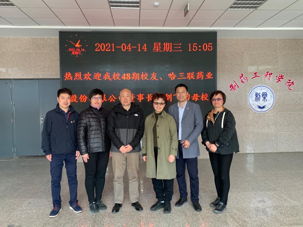 4月14日,金年会官网48期校友、哈尔滨三联药业股份有限公司董事长秦剑飞、研发中心科学委员会秘书长胡玉庆一行访问金年会jinnianhuicom,院长赵临襄、院党委书记李哲、副院长赵燕芳、副院长郭永学、院长助理刘洋热情接待秦总一行并在学院241会议室举行交流座谈。学院研究生辅导员一同参加了座谈。