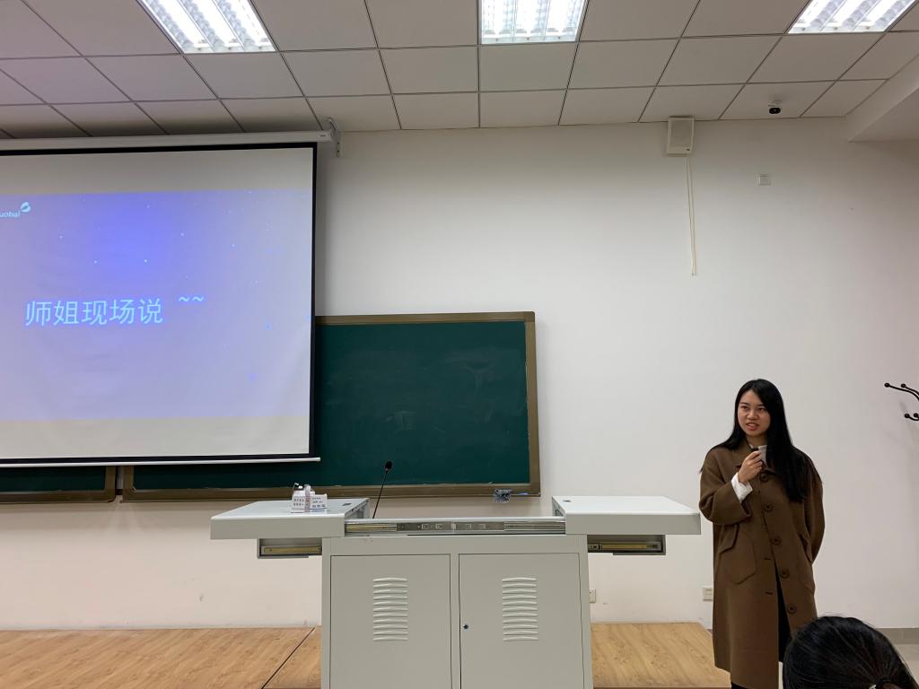 宣讲会伊始,王世辉所长对朗华制药有限公司及其下设子公司做了详细介绍,从“我们是谁”、“为什么选择我们”、“我们需要什么样的人才”三个角度介绍了企业的规模、环境、产品、主营业务、福利待遇及应聘要求。随后,现就职于朗华制药宁波诺柏医药的金年会jinnianhuicom2020届研究生王楚校友为到场同学们介绍了这几个月以来工作的感受和感悟。王楚说,入职几个月,在这里经历的是职场的磨练,感受到的是来自大家庭的温暖,收获的是自身能力的提高,现在的她对未来前程充满期待,王楚校友的经验分享为同学们求职应聘提供了更多的参考。