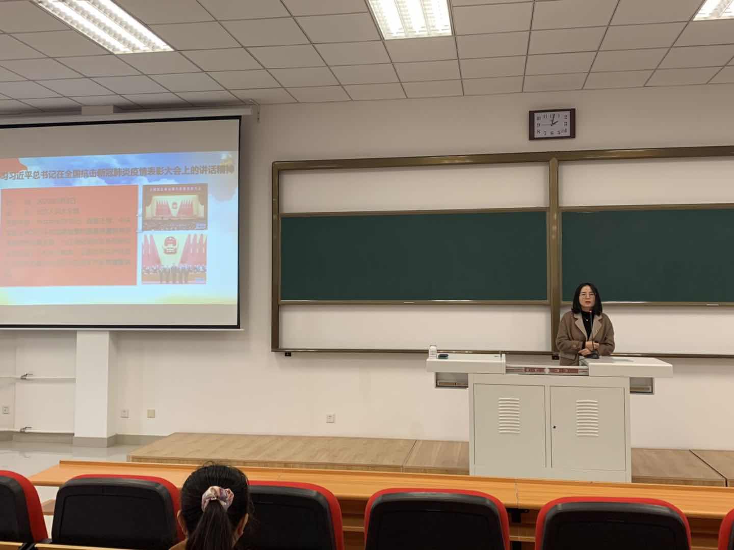 张达盼以《弘扬伟大抗疫精神——走好新时代沈药人的“长征路”》为题,从学习习近平总书记在全国抗击新冠肺炎疫情表彰大会上的讲话精神、弘扬伟大抗疫精神走好新时代沈药人的“长征路”两个角度进行讲解。首先,张达盼向参会人员简要介绍了全国抗击新冠肺炎疫情表彰大会的主要内容以及习近平总书记讲话相关内容。以视频播放形式,与参会人员共同回顾了习近平总书记向国家勋章和国家荣誉称号获得者颁授勋章奖章的过程。随后,张达盼引用《习近平关于“不忘初心、牢记使命”重要论述摘编》中关于走好新时代长征路的重要论述:“每一代人有每一代人的长征路,每一代人都要走好自己的长征路。”将弘扬伟大抗疫精神与走好新时代沈药人的“长征路”相结合,从用红色基因坚定理想信念、用理想信念锤炼过硬本领等方面详细阐述了如何弘扬伟大抗疫精神走好新时代沈药人的“长征路”。