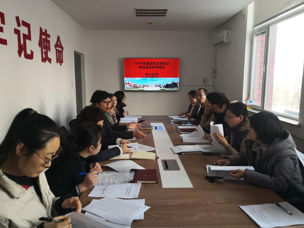 为认真贯彻落实习近平新时代中国特色社会主义思想和党的十九大精神,落实全面从严治党要求,进一步推动全面从严治党向基层延伸,促进基层组织建设全面进步全面过硬,2020年1月10日下午金年会jinnianhuicom党委于制药楼241会议室召开了2019年度党支部书记抓党建述职评议考核会。学院领导、各系主任、工会主席、党支部书记、部分党员干部群众代表参加了评议考核会,会议由学院党委书记李哲主持。