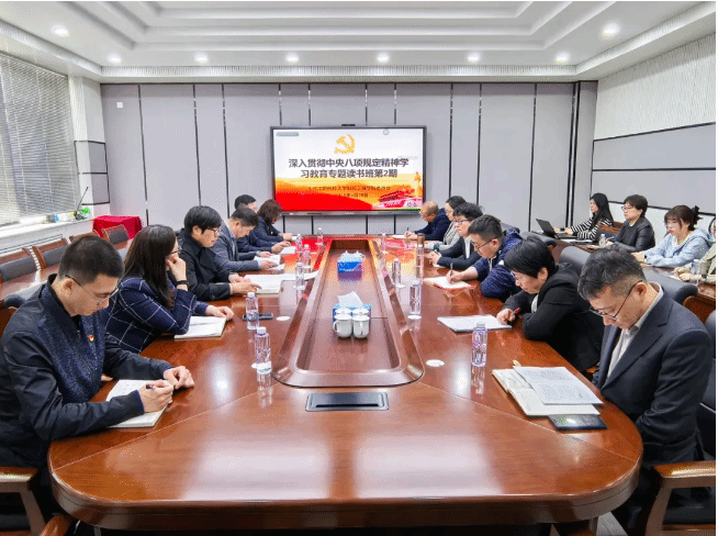 4月29日下午,金年会jinnianhuicom举行深入贯彻中央八项规定精神学习教育第2期读书班暨党委理论学习中心组专题学习会。学院党委书记李哲主持会议,院领导班子成员、各党支部书记、专职组织员参会