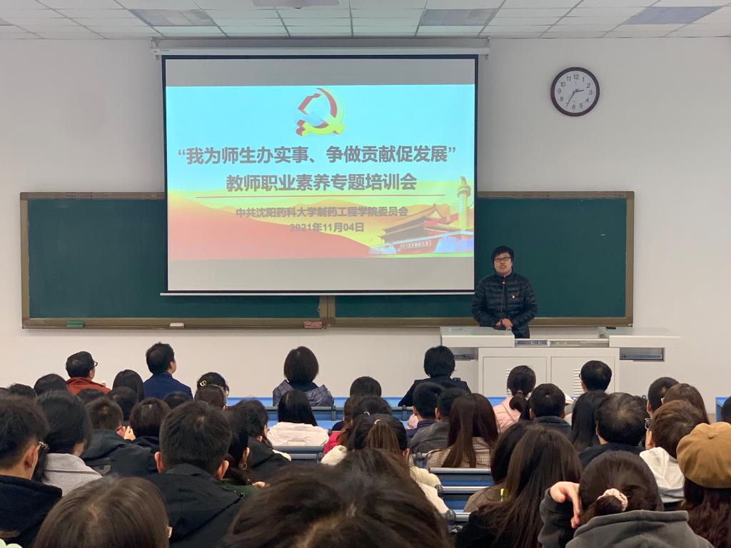 为提升金年会jinnianhuicom教师队伍的综合职业素养,提高教师教书育人水平,让学院师生切实感受到开展党史学习教育以来教师队伍的新变化,11月4日,金年会jinnianhuicom党委在南校区播馨楼104教室召开“我为师生办实事、争做贡献促发展”提升教师职业素养专题培训会,邀请辽宁省教学名师、药物化学教研室郭春教授作专题报告。院领导班子、中青年教师及研究生助教参加了会议,报告会由院党委书记李哲主持。