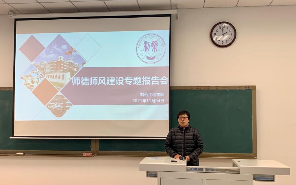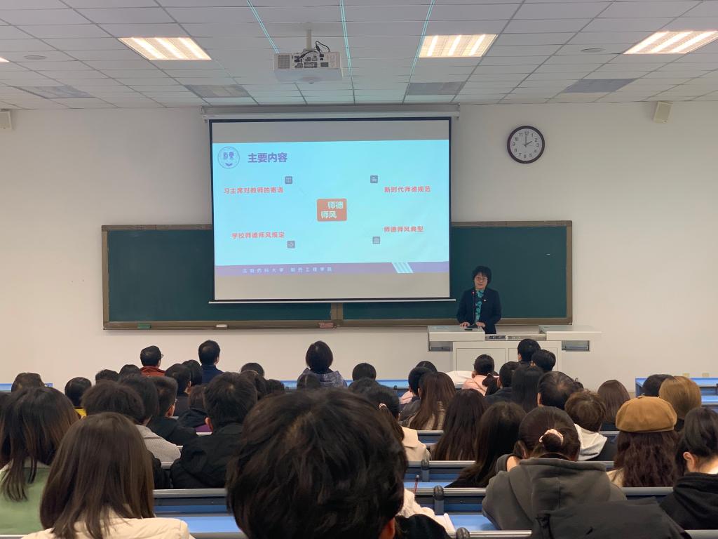 为深入推进学院新时代师德师风建设工作,着力培养政治素质过硬、业务能力精湛、育人水平高超的教师队伍,金年会jinnianhuicom于11月4日在南校区播馨楼104教室召开师德师风建设专题报告会,邀请辽宁省教学名师、制药工程与环境科学系主任侯晓虹教授作专题讲座。院领导班子成员、学院教师参加了会议,报告会由院党委书记李哲主持。