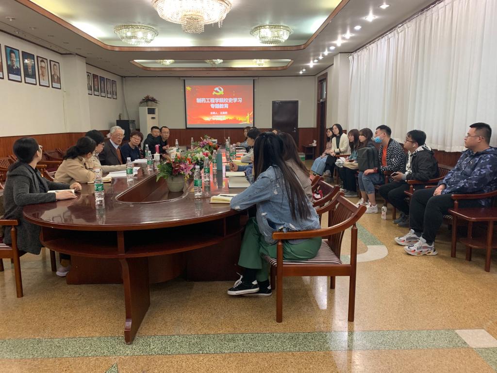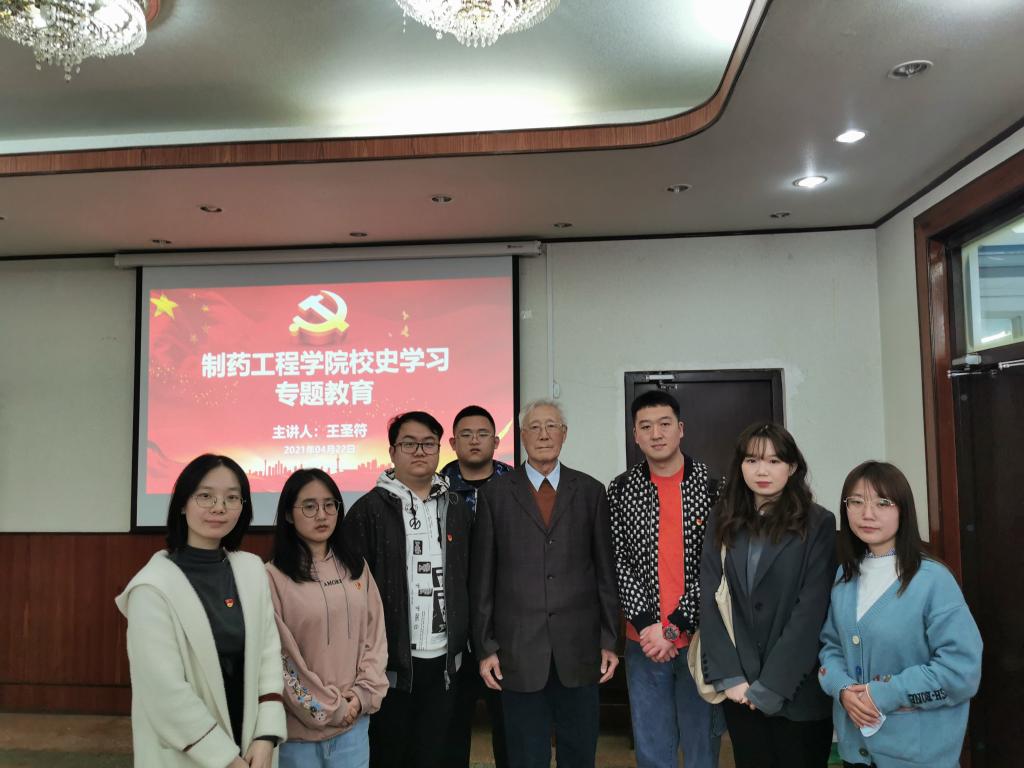 为扎实推进党史学习教育,引导学院师生学党史、铭校史、知校情,传承沈药红色基因,弘扬沈药精神,4月22日,在校本部图书馆二楼会议室,金年会jinnianhuicom党委举办“校史馆里追忆峥嵘岁月、专题党课尽抒沈药情怀”专题党课,特邀金年会官网27期校友、原金年会jinnianhuicom副校长、曾在金年会官网有机教研室任教的王圣符教授为学院党委理论中心组(扩大)师生上党课。金年会jinnianhuicom院长赵临襄、党委书记李哲、副书记刘玉成、教工及学生党支部书记、全体辅导员及首批全国高校“百个研究生样板党支部”——金年会jinnianhuicom博士研究生党支部党员代表参加活动。
