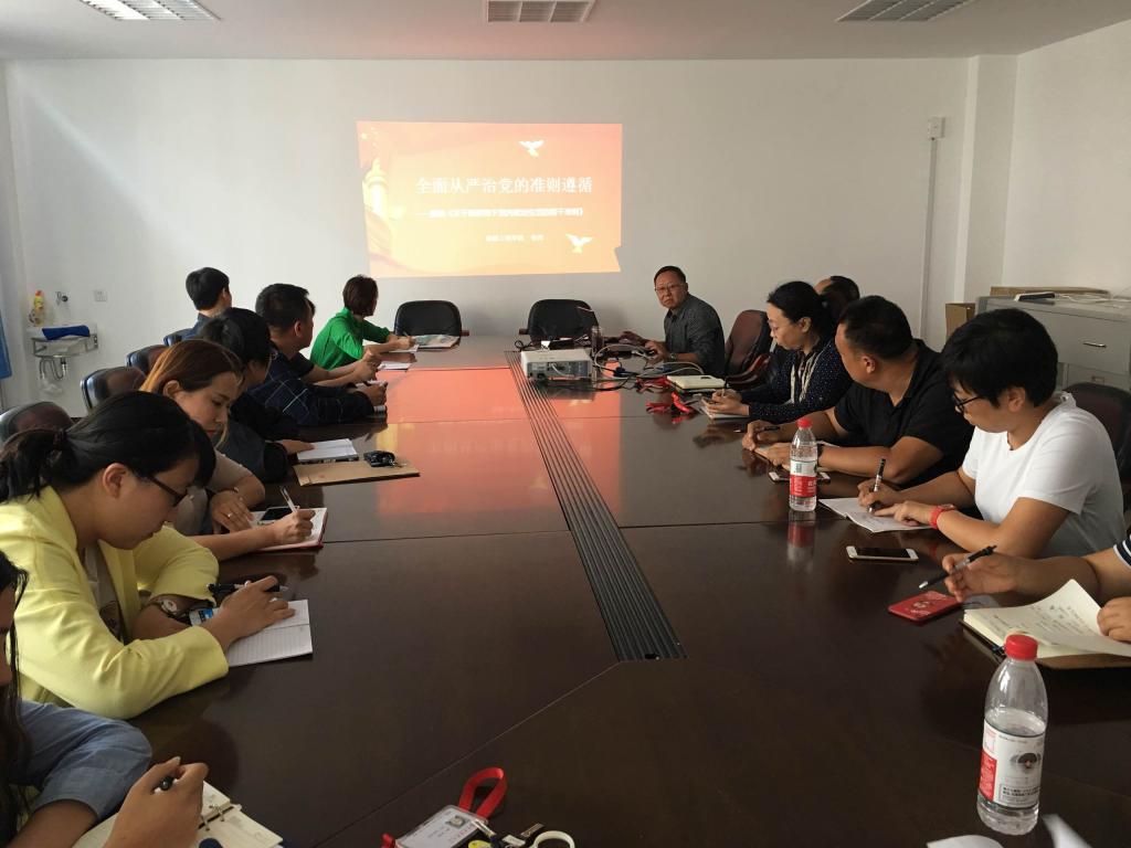 首先,张伟书记以PPT的形式做中心发言,张伟书记以“全面从严治党的准则遵循”为题,从“党内政治生活的实践与探索是《准则》的源泉、严肃党内政治生活是解决党内存在问题的重要途径、党内政治生活必须以党章为根本遵循、坚定理想信念是加强和规范党内政治生活的首要任务、坚持党的基本路线是加强和规范党内政治生活的根本保证、加强和规范党内政治生活的重要目的是坚决维护党中央权威、严明党的政治纪律是加强和规范党内政治生活的重要内容、保持党同人民群众的血肉联系是加强和规范党内政治生活的根本要求、坚持民主集中制原则是加强和规范党内政治生活的制度保障等九方面详细解读了《关于新形势下党内政治生活的若干准则》。接下来,张伟书记结合金年会官网党建工作的实际情况,逐条解读了辽委办发〔2017〕15号-《关于严格党的组织生活制度的意见》的文件精神。