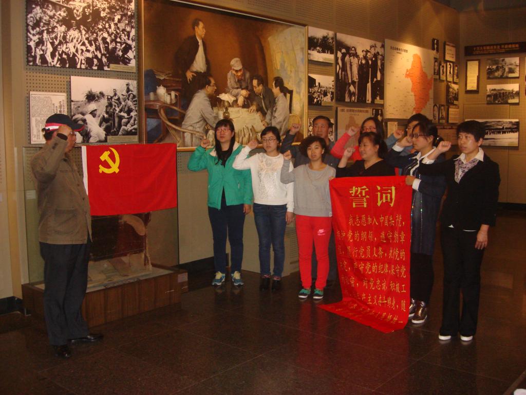 全体党员在讲解员的引领下依次参观了辽沈战役纪念馆的战史馆、支前馆、英烈馆和全景画馆。通过观瞻大量图片、文献、实物等史实材料及图表、绘画等辅助展品,让大家重温了那段血雨腥风的日子,革命先烈不畏艰险、无私奉献、英勇战斗的动人事迹深深地打动了在场的每一位党员。参观结束后,全体党员面对鲜红的党旗,庄严地举起右手,再一次重温了入党誓词。